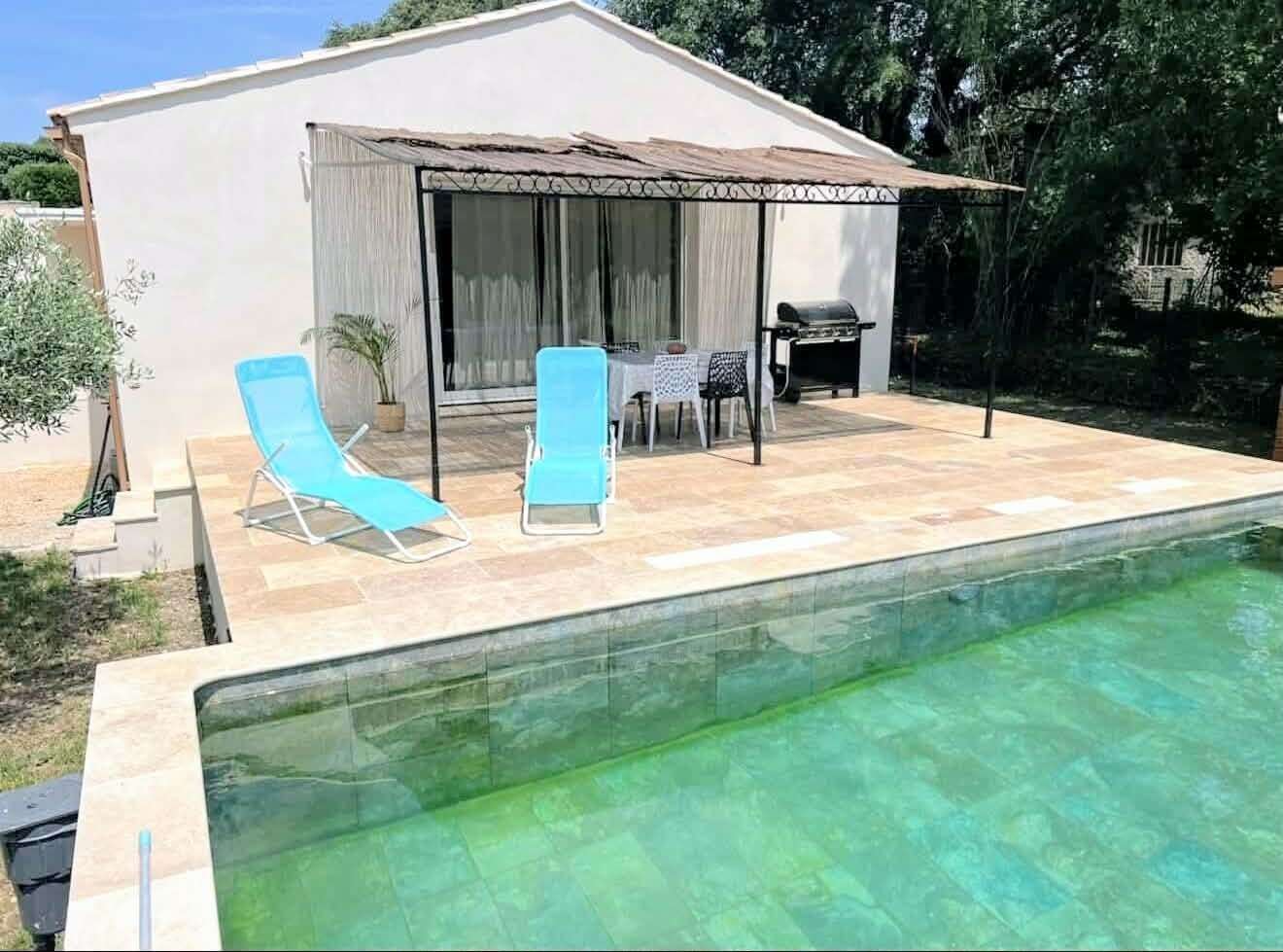 - PATIO AVEC PISCINE CHAUFFEE / TRANSAT ET PARASOLS