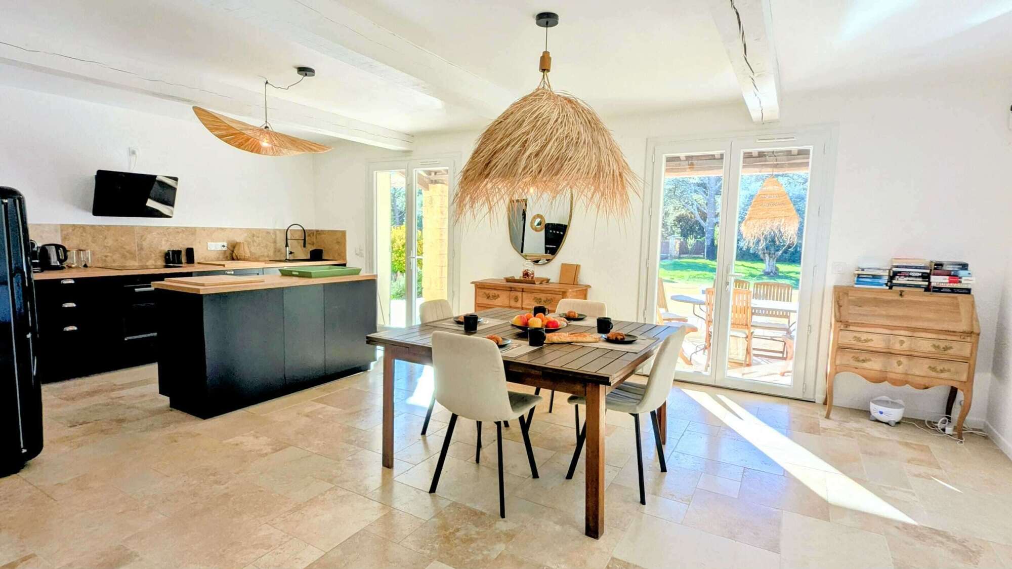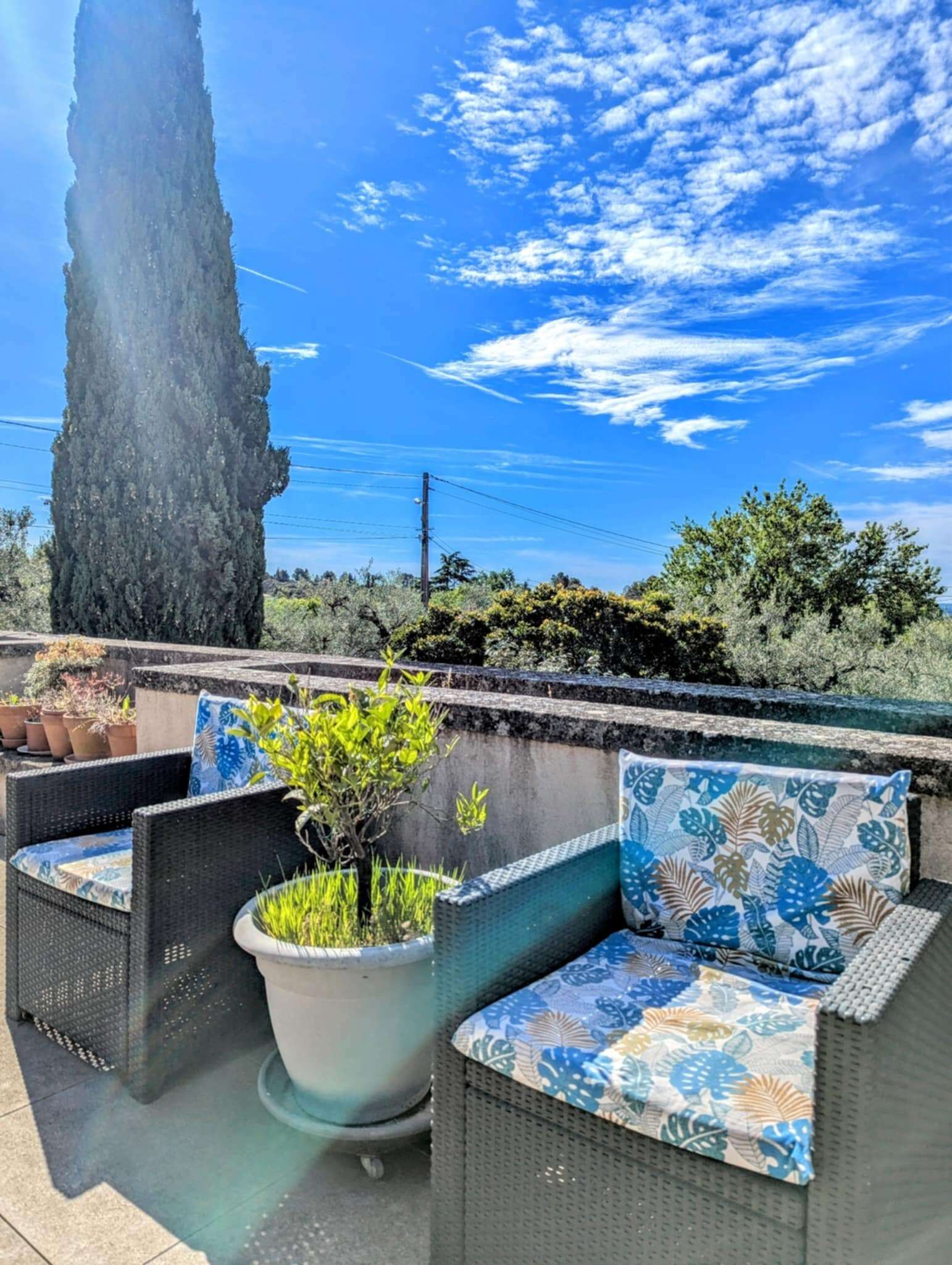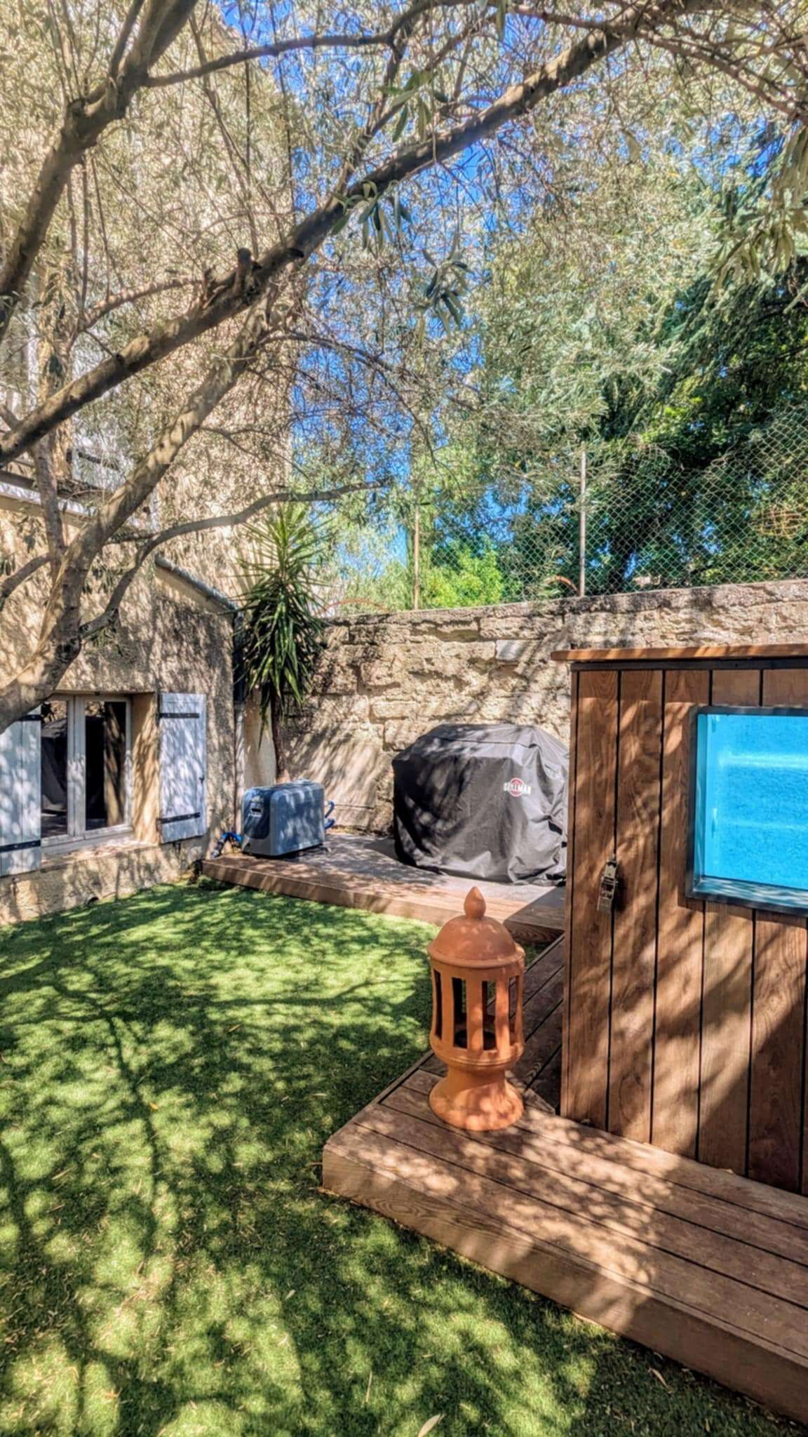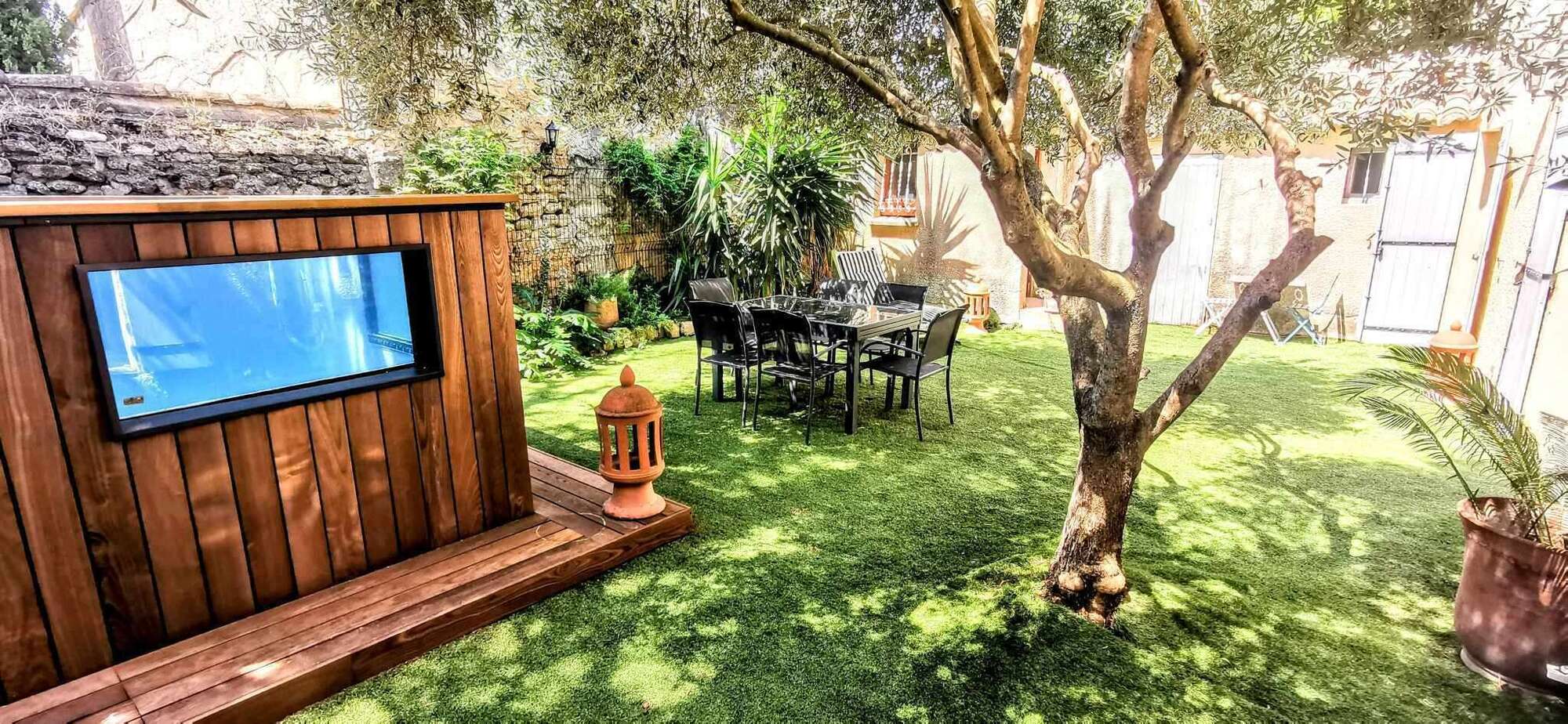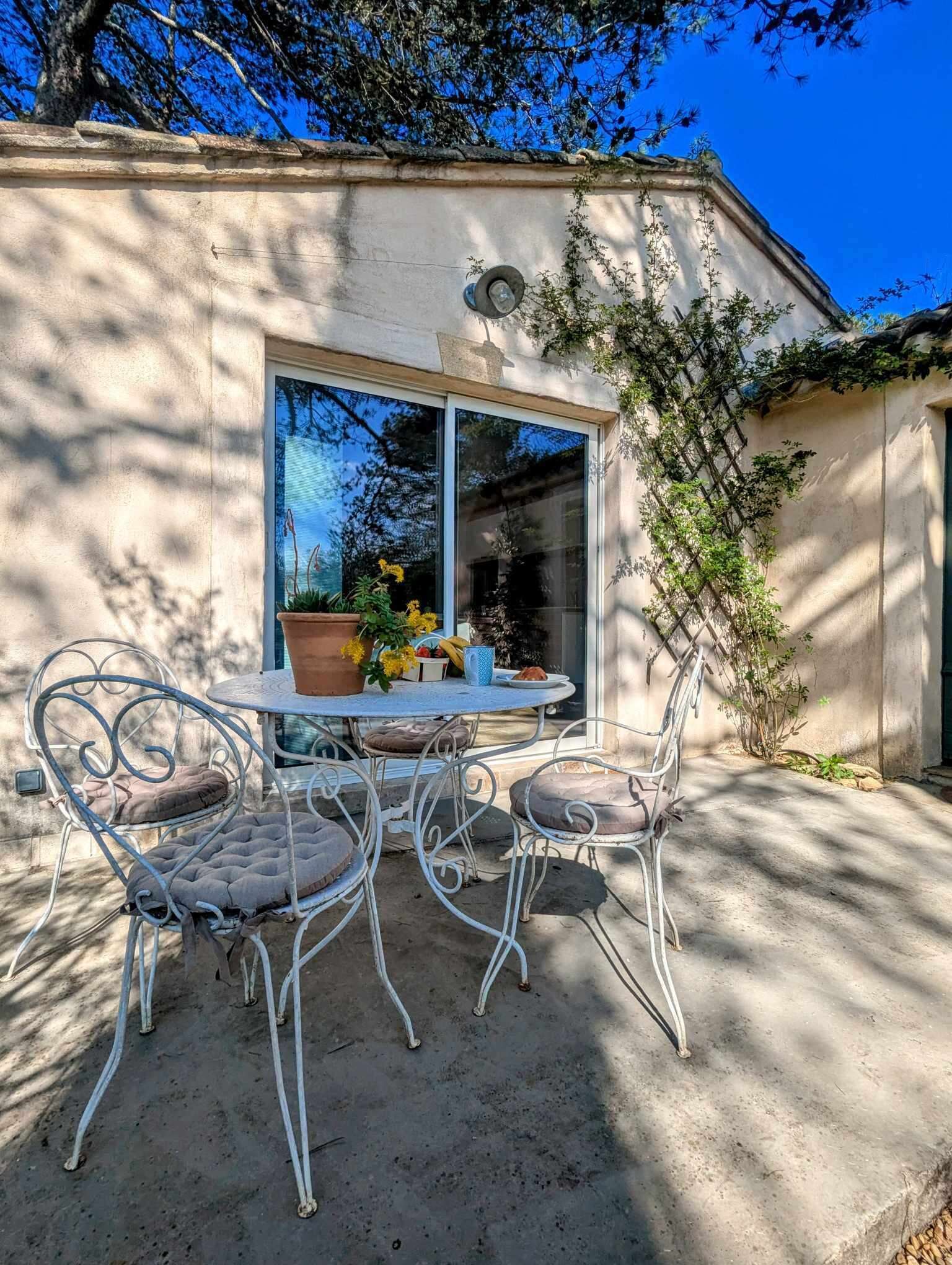 Vous profiterez d’un espace extérieur privé et ombragé naturellement, parfait pour vos repas en plein air ou vos siestes au chant des cigales.